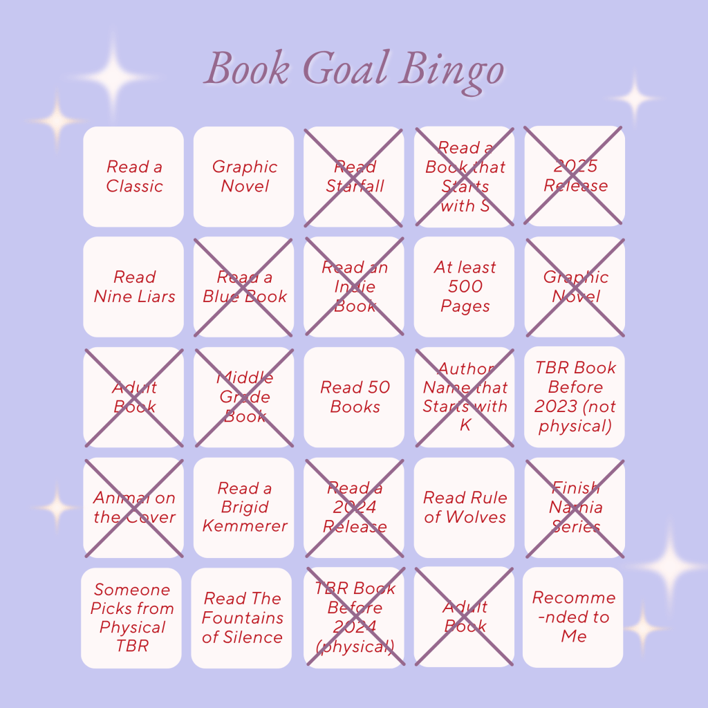 Other than my book goal bingo, I also had 15 books to read in 2025. Out of those 15 I have read: